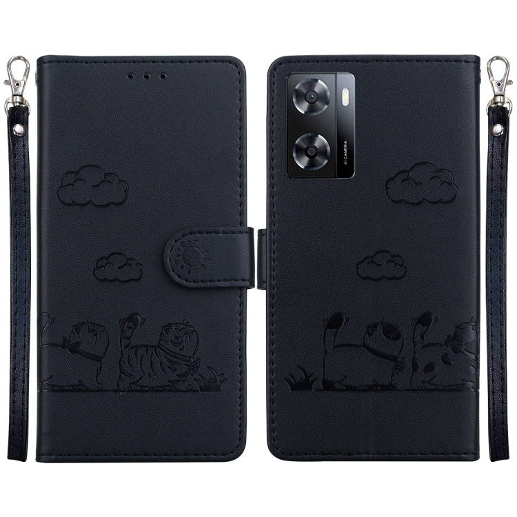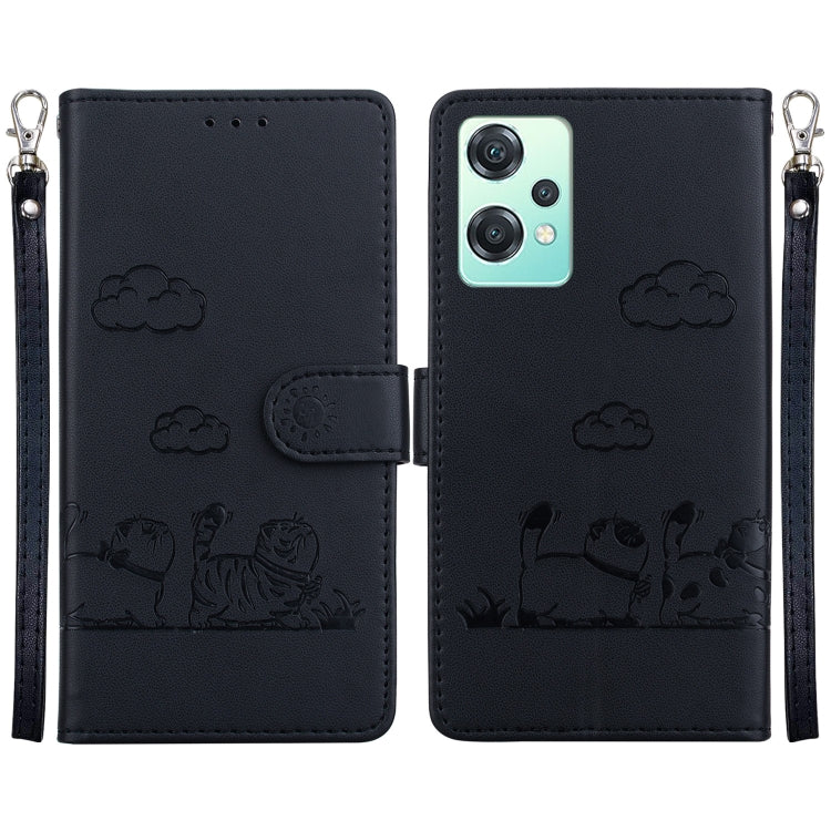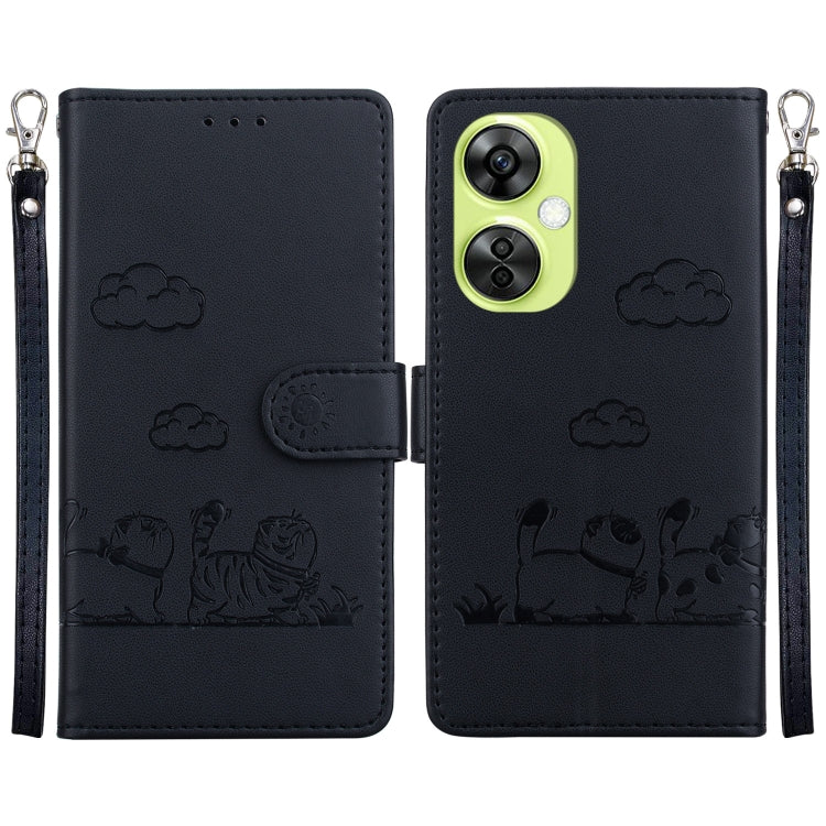 Funda de Cuero Rfid para OnePlus Nord Ce4 5G con Diseño de Gatos (Negra)