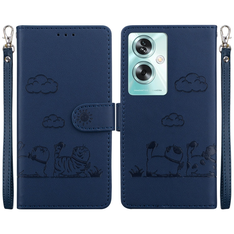 Funda de Cuero Rfid para OnePlus Nord Ce4 5G con Diseño de Gatos (Azul)