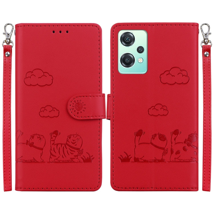 Funda de Cuero Rfid con Diseño de Gatos para OnePlus Nord N30 Se (Rojo)