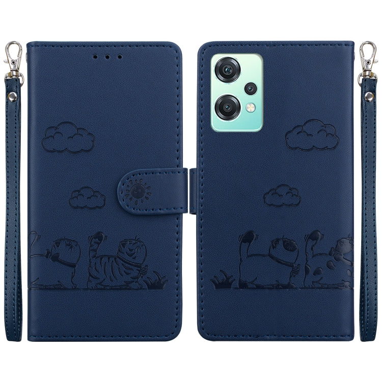 Funda de Cuero Rfid para OnePlus Nord N20 Se 4G con Diseño de Gatos (Azul)