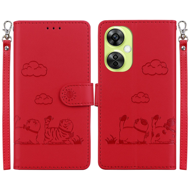Funda de Cuero Rfid para OnePlus Nord Ce4 5G con Diseño de Gatos (Rojo)