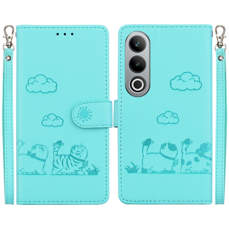 Funda de Cuero Rfid con Diseño de Gatos para OnePlus Nord Ce4 5G (Verde)