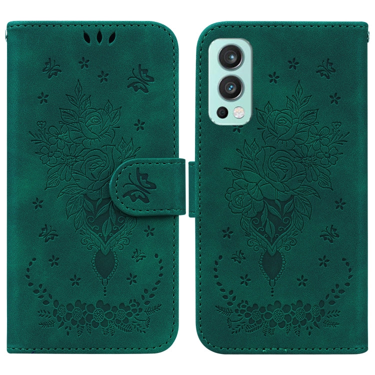 Funda para OnePlus Nord 2 5G Butterfly Rose Foothip en Relieve de Cuero (Verde)