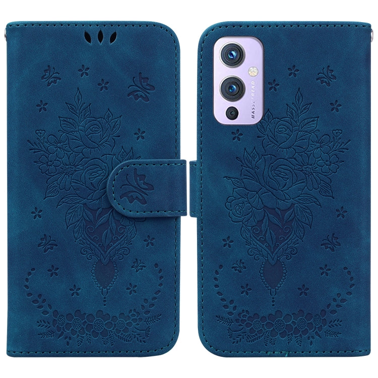 Funda para OnePlus 9 US y EU Version Butterfly Rose Cuero Rossed (Azul)