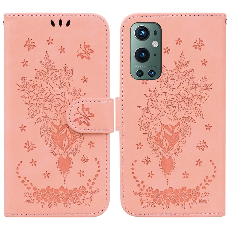 Funda para OnePlus 9 Pro Butterfly Rose Foothip en Relieve de Cuero (Rosa)
