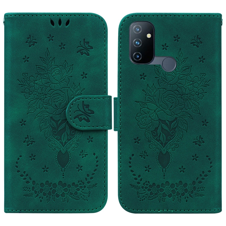 Funda para OnePlus Nord N100 Cuero con Butterfly Rose en Relieve (Verde)