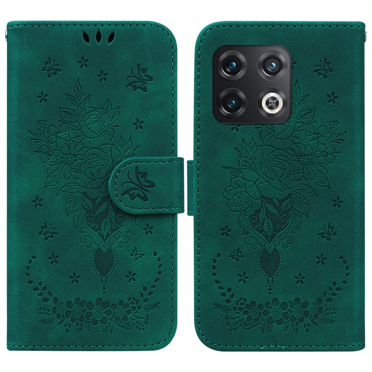 Funda para OnePlus 10 Pro 5G Butterfly Rose Foothip en Relieve de Cuero (Verde)