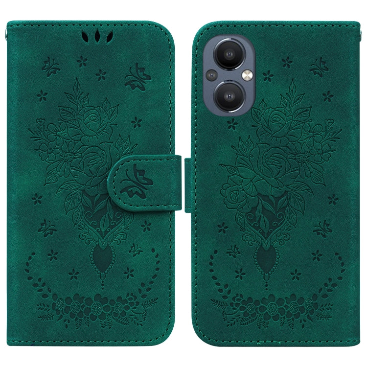 Funda para OnePlus Nord N20 5G Butterfly Rose Foothip en Relieve de Cuero (Verde)
