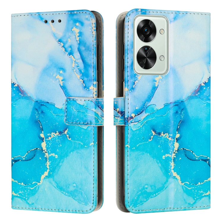 Funda de Cuero para OnePlus Nord 2T con Patrón de Mármol Pintado (Azul Verde)