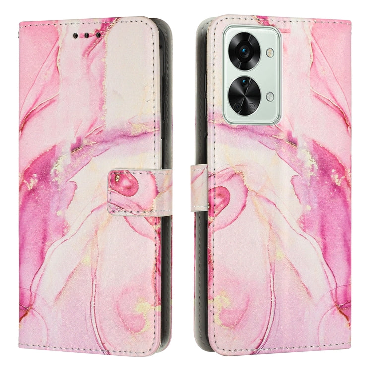 Funda de Cuero para OnePlus Nord 2T con Patrón de Mármol Pintado (Oro Rosa)