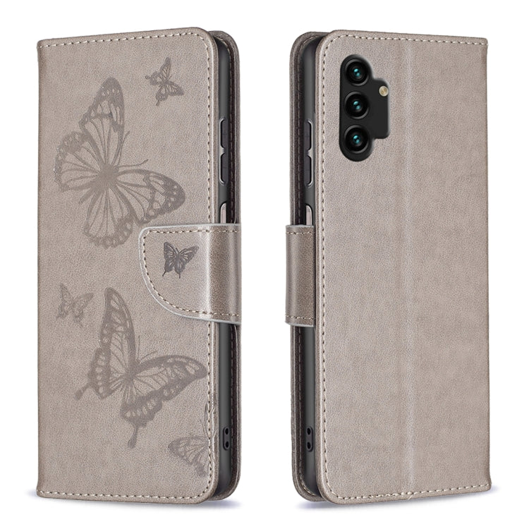 Estuche de teléfono Samsung Galaxy A13 4G Cuero en relieve Dos mariposas (Gris)