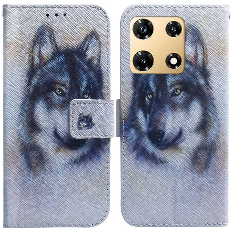 Estuche para Infinix Note 30 Pro de Cuero con Tapa y Dibujo a Color (Lobo Blanco)