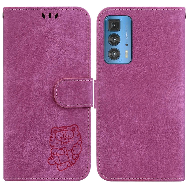 For Motorola Edge 20 Pro Little Tiger Embossed Leather Phone Case(Rose Red)