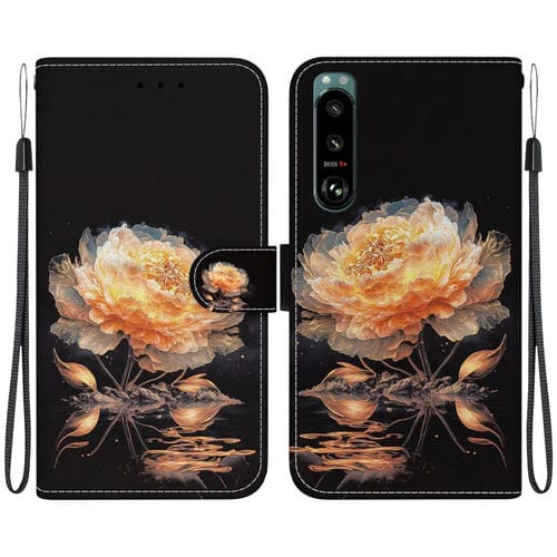 Estuche para Sony Xperia 5 III de Cuero con Dibujo Epiphyllum y Mariposa Dorada
