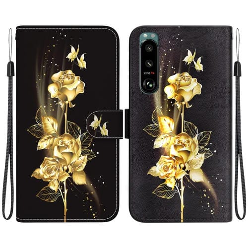 Estuche para Sony Xperia 5 III de Cuero Pintado 3D Mariposa Golondrina Dorada