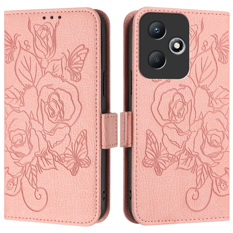 Estuche de Cuero Antirrobo RFID para Infinix Hot 30 5G con Relieve (Rosa)