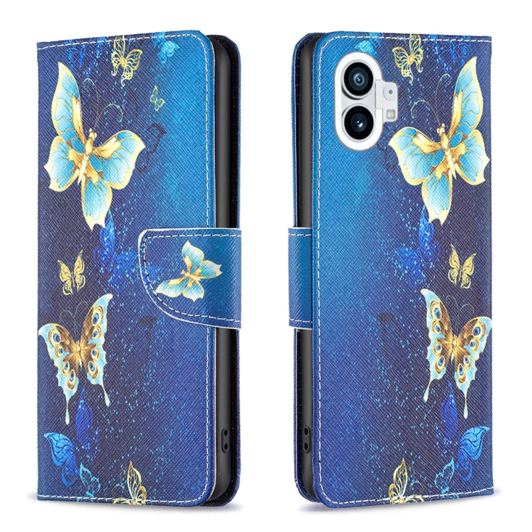 Estuche de Cuero For Nothing Phone 1 con Dibujo a Color Mariposa Dorada