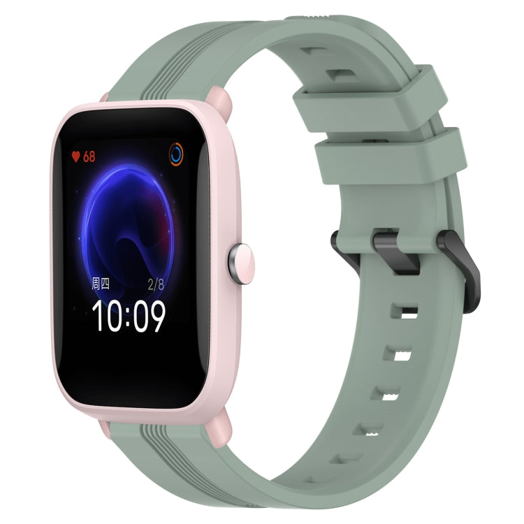 Correa de Reloj Amazfit Pop Pro 20mm Silicona con Rayas Cóncavas (Verde Grisáceo)
