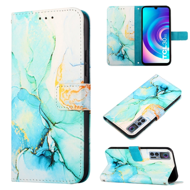 Estuche de Cuero para TCL 30 5G/30+ 5G Pt003 con Tapa y Patrón de Mármol (Verde)