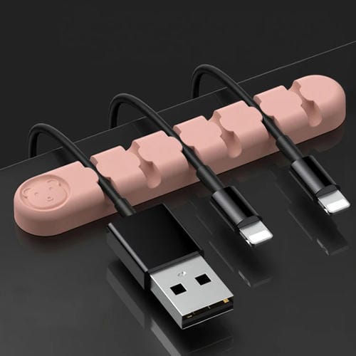 Organizador de Cable Silicone Oso 6 Agujeros Desktop Fijación (Arena Rosa) 5 PCs