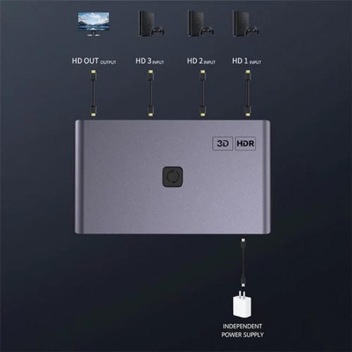 - Resolución máxima soportada de 4K a 60 Hz, 3 Puertos de entrada HDMI y 1 Puerto de salida HDMI, Alimentación mediante interfaz Tipo-C 5V
