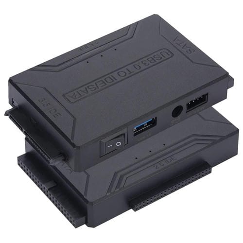 El Adaptador SATA/IDE a USB 3.0 es un convertidor de Cable diseñado para conectar Discos duros y unidades ópticas con interfaces SATA y IDE a Computadoras mediante un Puerto USB 3.0. Compatible con Discos duros y unidades SSD de 2.5 y 3.5 pulgadas, así como con unidades DVD-ROM, CD-ROM, CD-RW, DVD-RW y DVD+RW, este dispositivo facilita la transferencia, copia y respaldo de datos de manera eficiente. Su función principal es permitir el acceso simultáneo a tres unidades, optimizando el flujo de trabajo para usuarios que requieren manipular grandes volúmenes de información o migrar datos entre diferentes dispositivos de almacenamiento, todo ello con Soporte para sistemas operativos Windows, Mac OS y Linux.