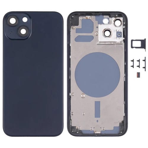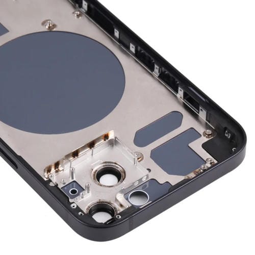 La Cubierta Trasera de la Carcasa para iPhone 13 en color Negro es un componente diseñado para reemplazar la Tapa Trasera Original del dispositivo. Incluye la bandeja para Tarjeta SIM, las llaves laterales y las Lentes de la Cámara, asegurando una restauración Completa y funcional del Teléfono. Este repuesto es compatible exclusivamente con el modelo iPhone 13, proporcionando una solución integral para usuarios que reparan por cuenta propia o técnicos especializados que buscan mantener la integridad estructural y estética del dispositivo. Su función principal es proteger el interior del Teléfono, además de alojar correctamente los elementos esenciales como la Tarjeta SIM y los controles laterales.