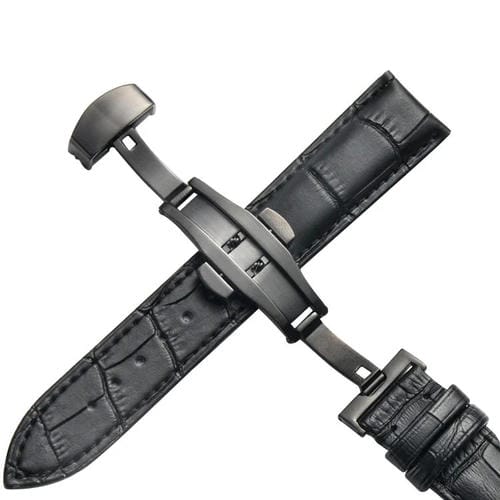 Banda de Reloj Cuero de Vaca 16mm con Hebilla de Mariposa (Negro)