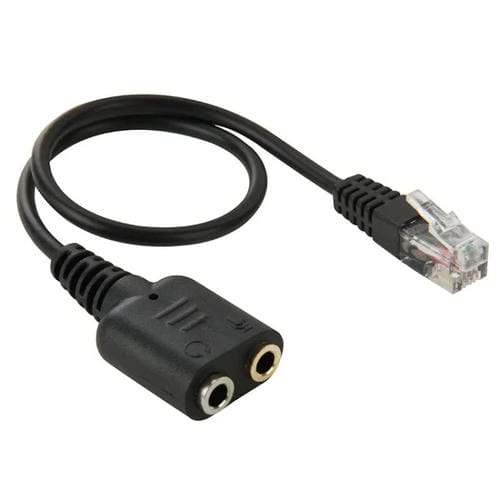 - 1x Cable Convertidor Adaptador Auricular a Teléfono Oficina 3,5 mm Hembra a RJ9 30 cm (Negro)