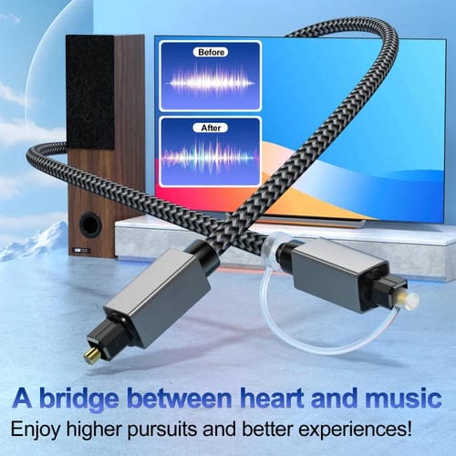 El Cable de Audio Óptico Digital Toslink Macho a Macho con un diámetro Exterior de 5,0 mm y longitud de 1 metro, está diseñado para transmitir Señales de audio Digital con alta fidelidad. Compatible con sistemas de sonido que soportan configuraciones de hasta 7.1 y 5.1 canales, este Cable es ideal para conectar televisores, Altavoces y otros dispositivos equipados con Puertos cuadrados de fibra óptica. Su función principal es garantizar la transferencia de audio Digital sin interferencias, ofreciendo una Señal clara y estable incluso a volúmenes elevados.