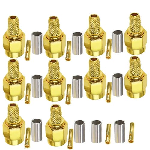 • 10x Conectores de Enchufe Macho RP-SMA para RG58, LMR195, RG142, RG400