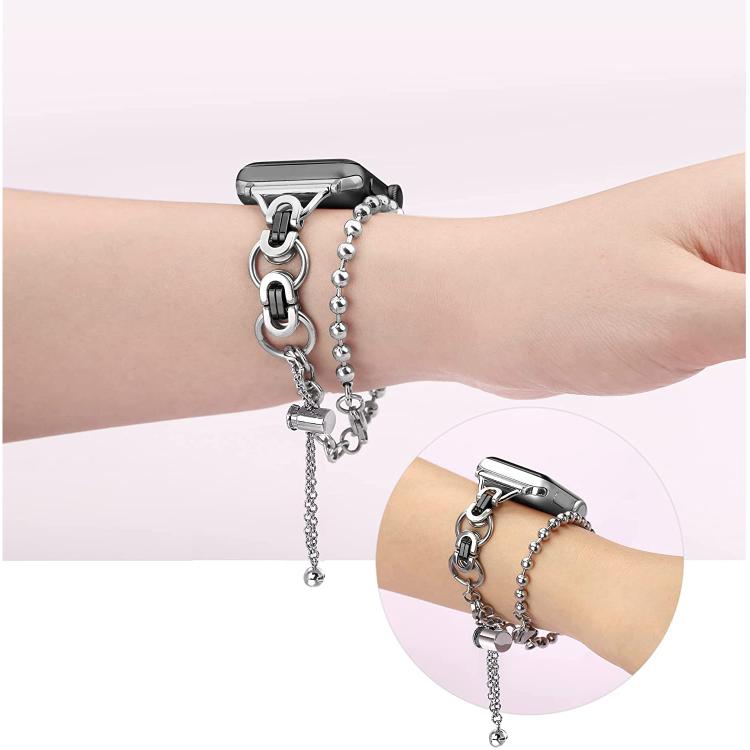 Correa de aleación de zinc con cadena de cuentas de doble círculo para Apple Watch de 46 mm, 49 mm, 45 mm y 44 mm (negro)