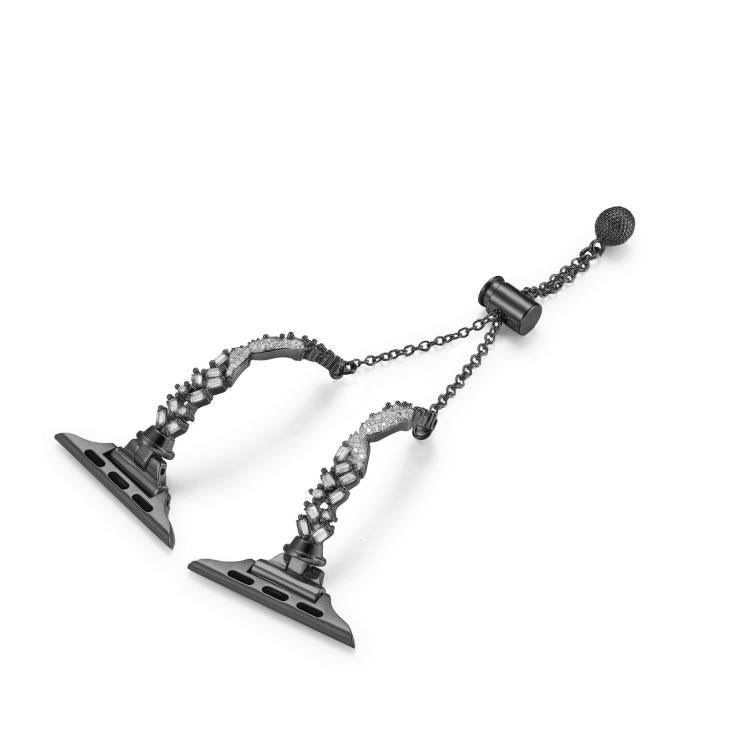 Correa de aleación de zinc con diamantes triturados para Apple Watch de 46 mm, 49 mm, 45 mm y 44 mm (negra)