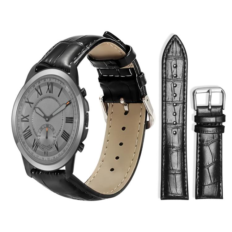 Correa de cuero con hebilla de pasador y textura de bambú de 24 mm para reloj híbrido Fossil Q Machine xDfind (negro)