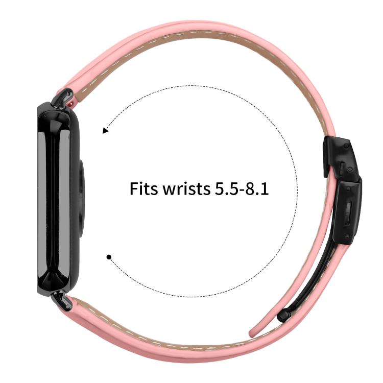 Correa de cuero con hebilla trasera de tortuga negra con textura de lichi para Xiaomi Smart Band 9 Pro y Redmi Watch 5 (rosa)