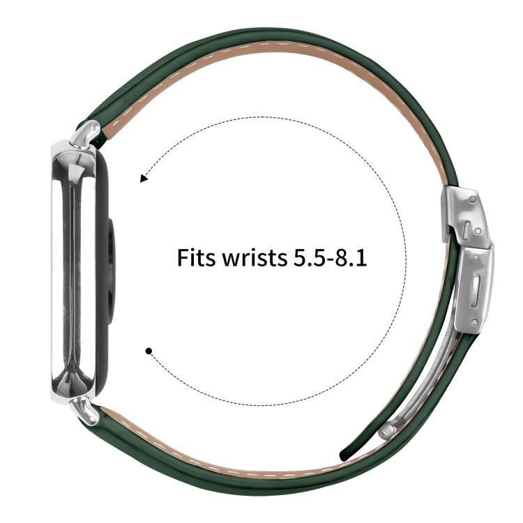 Correa de cuero con hebilla trasera de tortuga plateada y textura de lichi para Xiaomi Smart Band 9 Pro y Redmi Watch 5 (verde)
