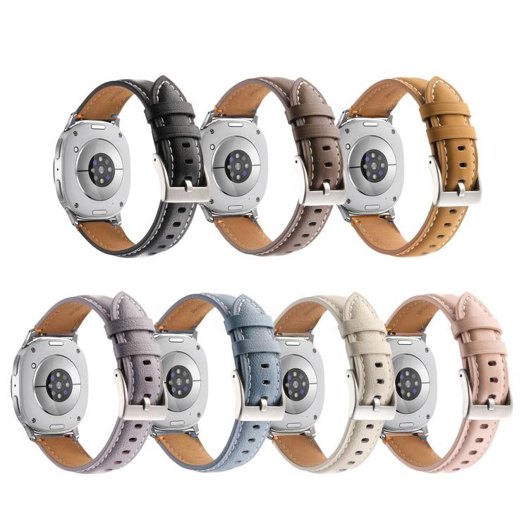 Correa de cuero genuino con costuras clásicas para Samsung Galaxy Watch8/Watch8 (azul cielo)