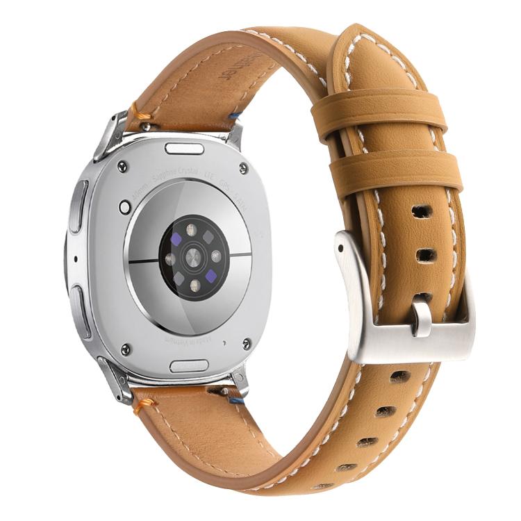 Correa de cuero genuino con costuras clásicas para Samsung Galaxy Watch8/Watch8 (marrón claro)
