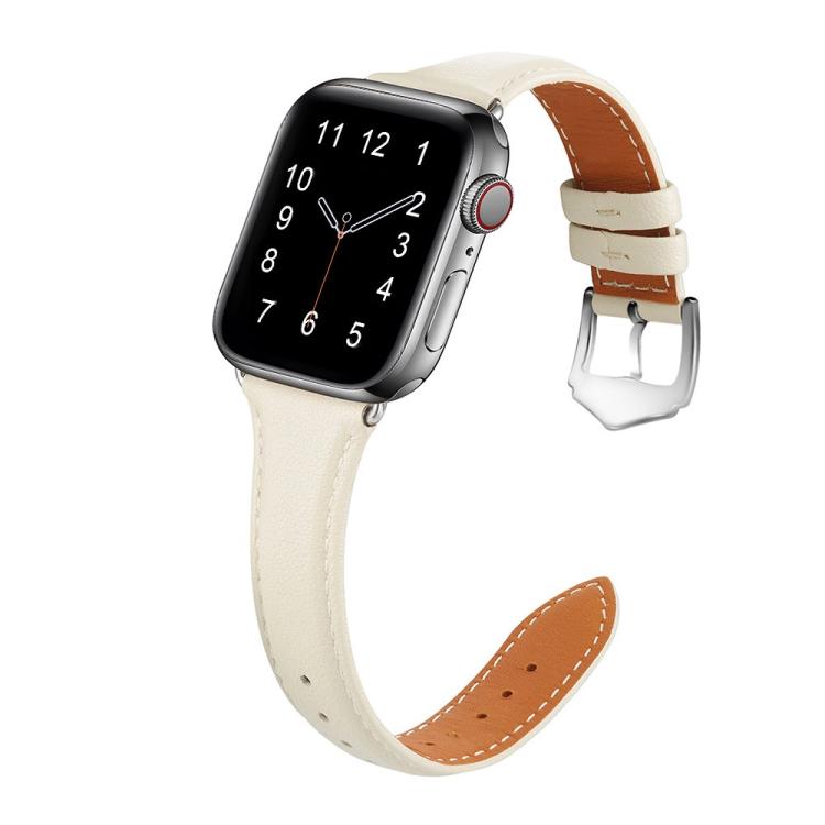 Correa de cuero genuino con hebilla pequeña para Apple Watch de 42 mm, 41 mm, 40 mm y 38 mm (blanco marfil)