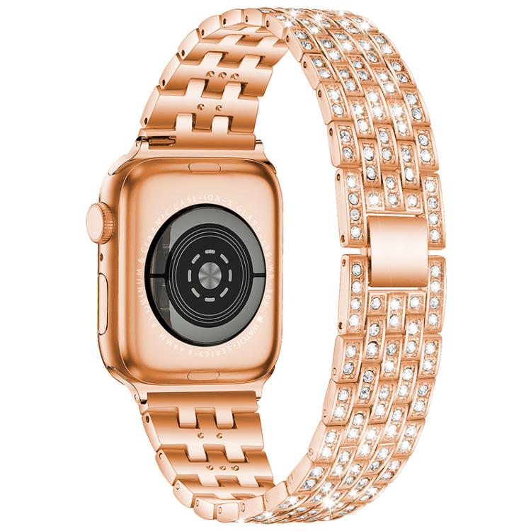 Correa de metal con cinco cuentas de diamantes para Apple Watch 38/40/41/S10 de 42 mm (oro rosa)