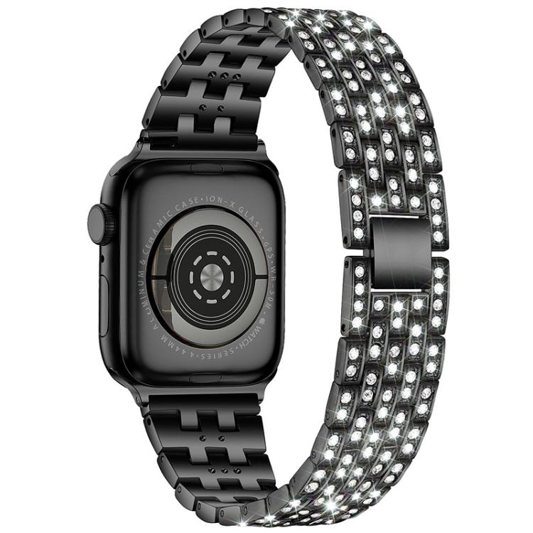 Correa de metal con cinco cuentas y diamantes para Apple Watch de 42, 44, 45, 46 y 49 mm (negro)