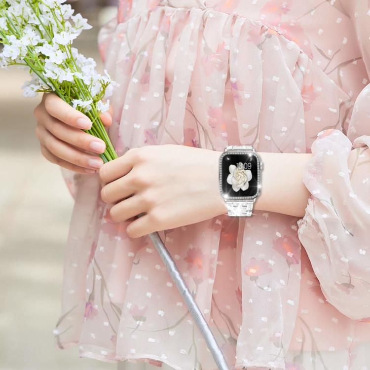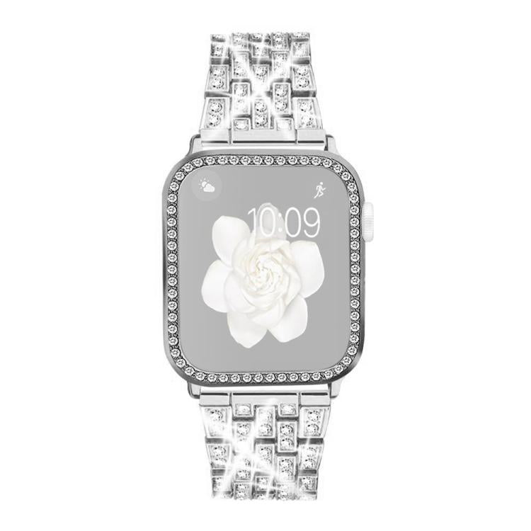 Correa de metal con diamantes brillantes y estuche para Apple Watch Series 10 de 42 mm xDfind (plateada)