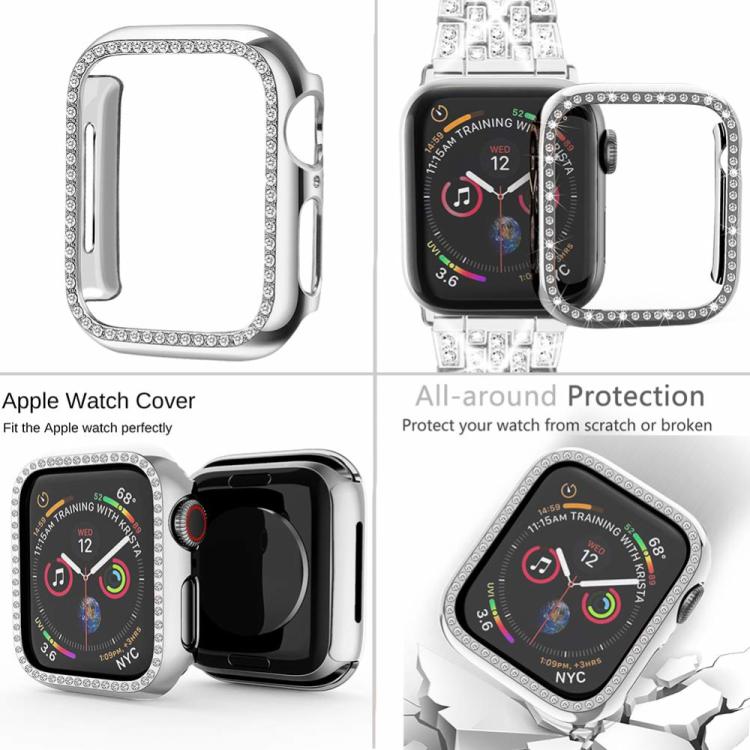 Correa de metal con diamantes brillantes y estuche para Apple Watch Series 10 de 46 mm xDfind (plateada)