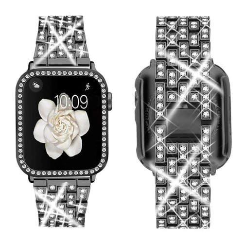 Correa de metal con diamantes brillantes y estuche para Apple Watch Series 41 mm xDfind (negro)