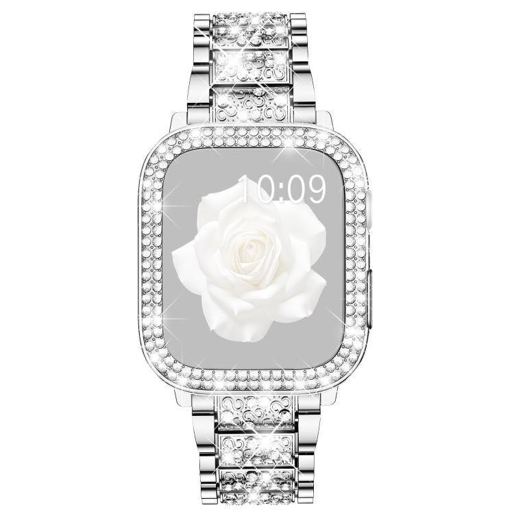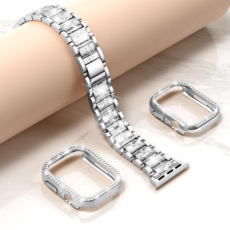 Correa de metal con diamantes y estuche para Apple Watch Series 41 mm xDfind (plateada)