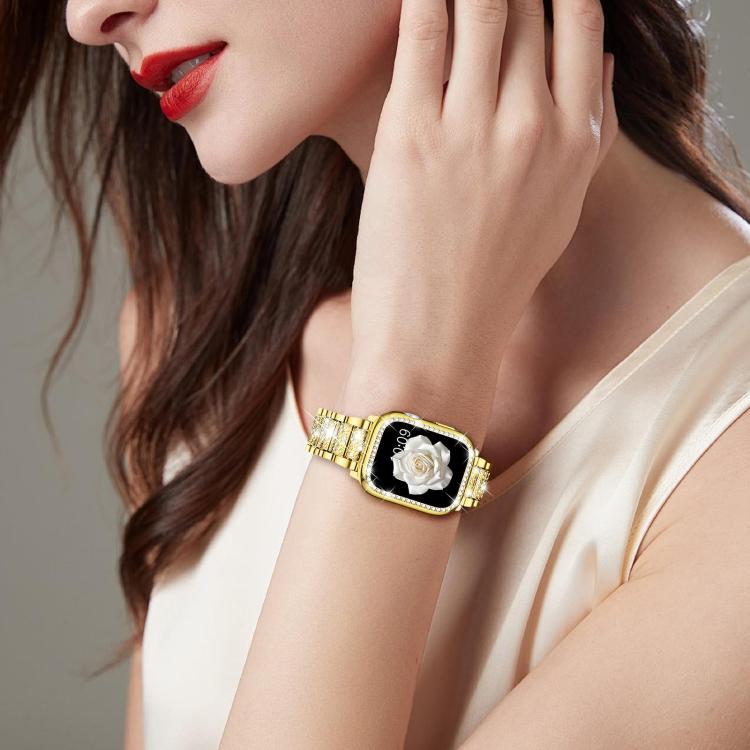 Correa de metal con diamantes y estuche para Apple Watch Series 44 mm xDfind (dorada)