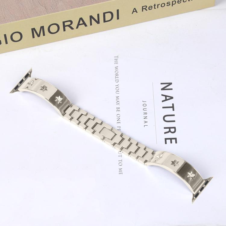Correa de metal con diseño de pétalos de nieve para Apple Watch de 46 mm, 49 mm, 45 mm y 44 mm (luz de estrellas)