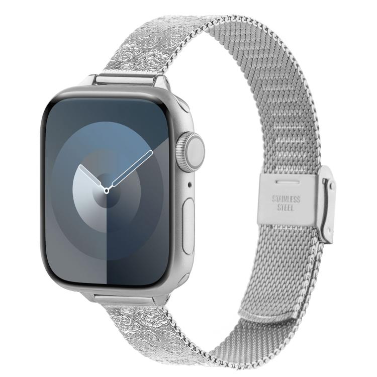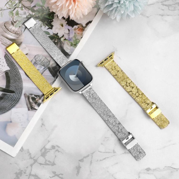 Correa de metal milanesa con relieve para Apple Watch de 46 mm, 49 mm, 45 mm y 44 mm (rosa plateado)