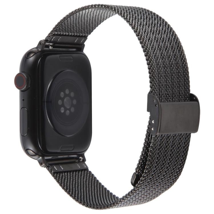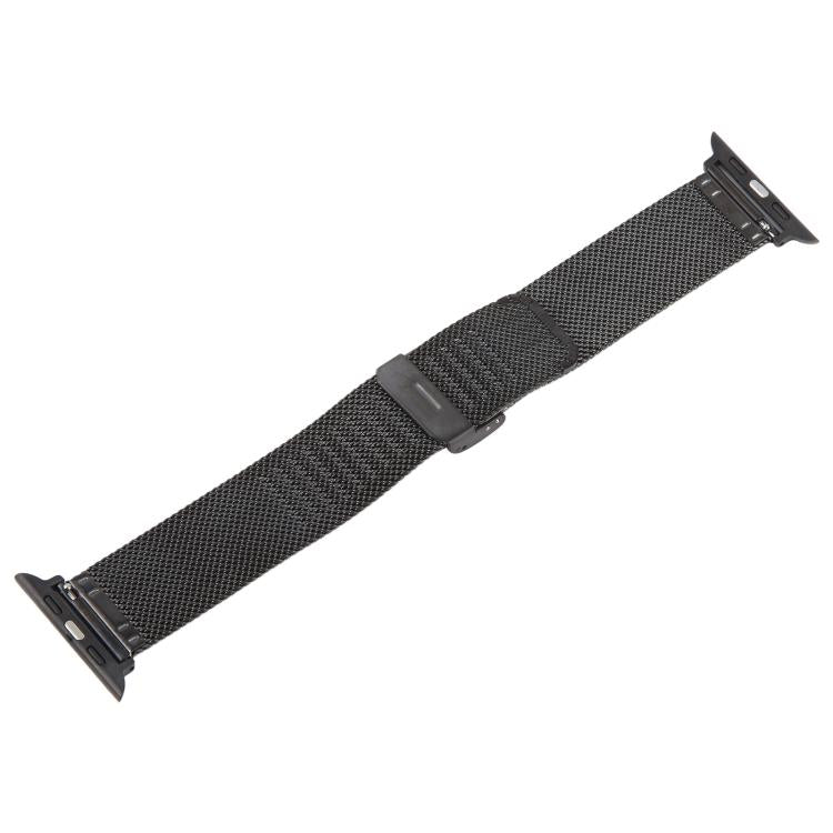 Correa de metal milanesa gruesa con relieve y hebilla integrada para Apple Watch de 42 mm, 41 mm, 40 mm y 38 mm (negra)