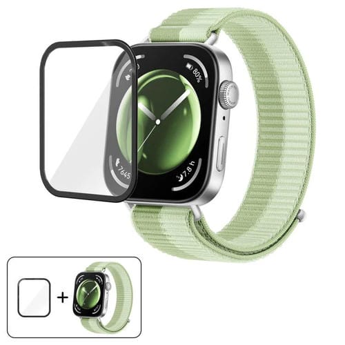 Correa de nailon con cierre de velcro y película curva 3D para Huawei Watch Fit 4 (verde menta)